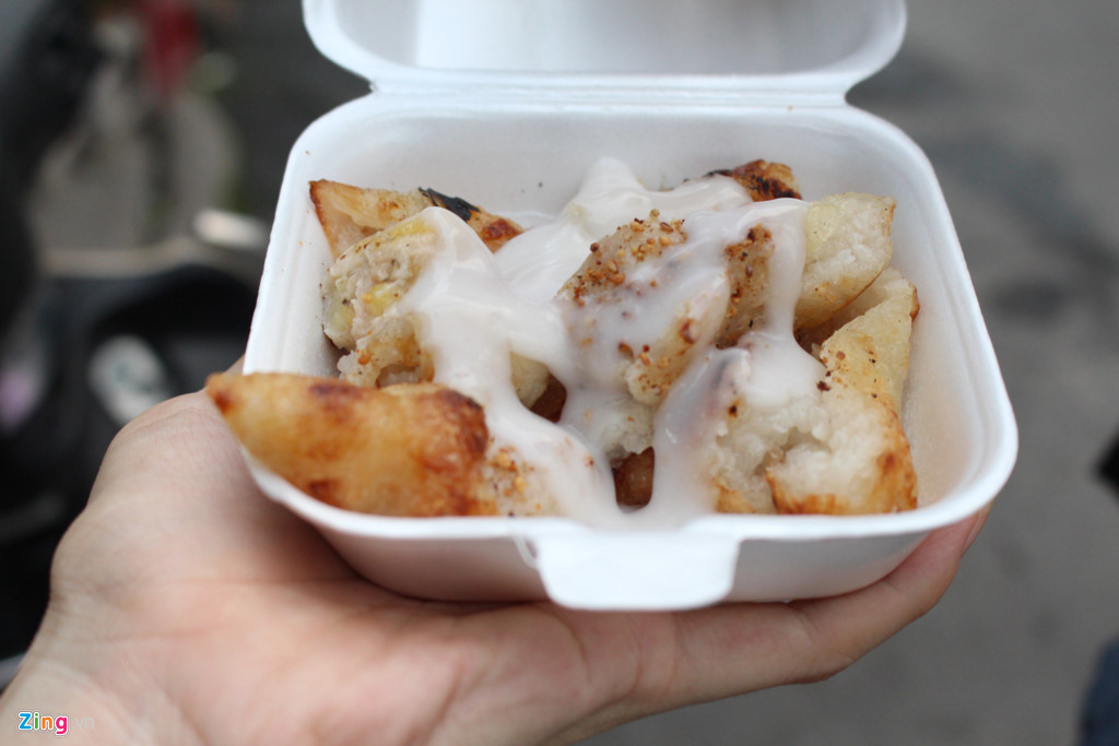 Chuối nếp nướng của quán có ba điểm hút khách là chuối có độ chín và kích thước vừa phải; nếp trộn dừa chỉ bao một lớp mỏng, đều quanh trái chuối; cuối cùng là nước cốt dừa có độ béo, ngọt vừa phải. Chuối ở đây có giá 15.000 đồng một phần, cao hơn những nơi khác.