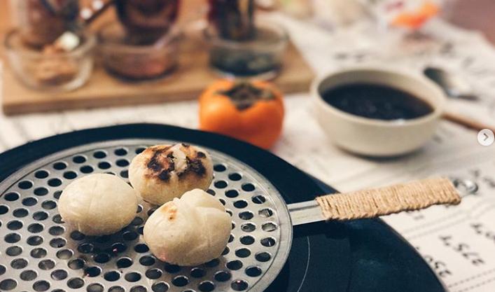 Đây là loại mochi nướng giòn với nhân đậu đỏ và quế.