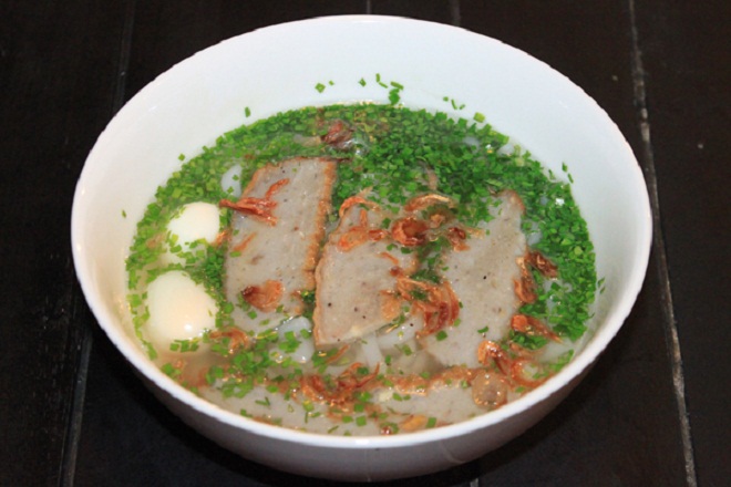 Ngoài các nguyên liệu quen thuộc như sợi bánh canh xắt, chả cá, thì hẹ xắt nhỏ phủ kín bề mặt là đặc trưng riêng biệt chỉ có trong món bánh canh hẹ của người Phú Yên. Ở TP HCM, món này được bán trong những quán ăn chuyên đồ Phú Yên như Bánh Bèo Quơ đường Lê Văn Sỹ, Bánh canh cô Nga đường Phạm Văn Đồng với giá 20.000-30.000 đồng một tô. Ảnh: Ngoisao.