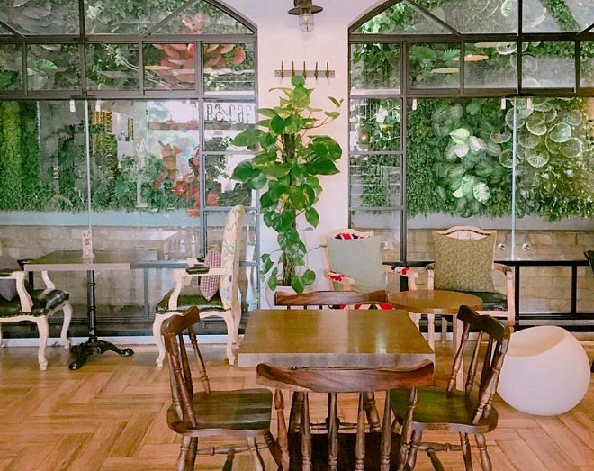 Được ví như trời Âu thu nhỏ giữa lòng Hà Nội, quán có hai tầng được bài trí rất tinh tế, lấy màu xám làm chủ đạo, cùng nhiều cây xanh. Từ bàn ghế đến những chiếc thảm của quán cũng gợi nét cổ điển châu Âu. Những chậu cây to đặt ngay giữa lối đi, bên cạnh ghế ngồi, ngoài ban công… khiến cho khách đến quán có cảm giác như ngồi giữa một khu vườn. Đồ uống và đồ ăn có tiêu chuẩn và giá tiền cao, như mỳ Ý, salad, pate vịt được chế biến bởi các đầu bếp khách sạn 5 sao. Địa chỉ: 24 Tông Đản, quận Hoàn Kiếm. Ảnh: Cosa Notra.