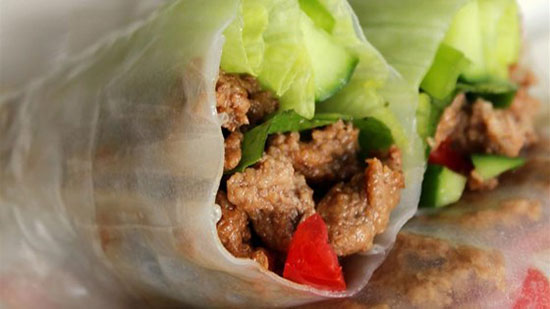 • Bò xào ăn kèm bánh tráng cuốn cùng dưa chuột, rau sống và chút bún chấm nước mắc chua ngọt ngon tuyệt.
