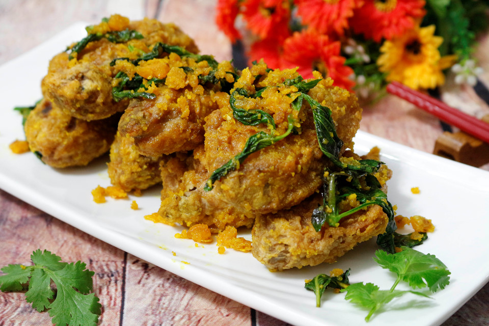 • Món cánh gà chiên giòn được phủ một lớp trứng muối béo ngậy thơm ngon, tạo thành món ăn hấp dẫn với cả gia đình bạn .