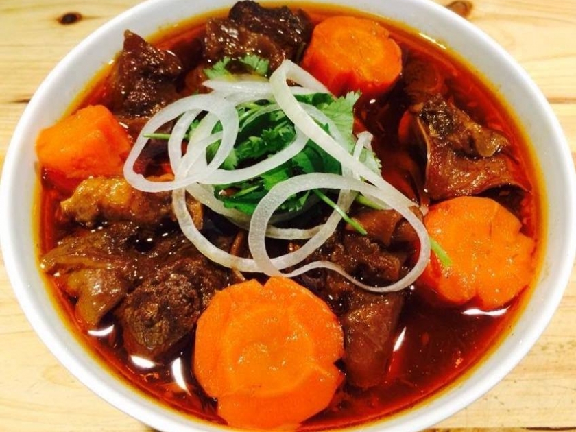 Tô mì đầy ắp thịt, tôm được rim đậm đà gia vị kết hợp lạc rang, nước dùng đặc trưng cùng các loại rau cho cảm giác ngon miệng.