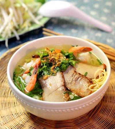 Tô mì đầy ắp thịt, tôm được rim đậm đà gia vị kết hợp lạc rang, nước dùng đặc trưng cùng các loại rau cho cảm giác ngon miệng.
