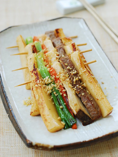 • Thay vì chỉ ăn tokbokki như thông thường, bạn có thể biến tấu thành món bánh gạo nướng thịt xiên lạ vị nhưng không kém phần hấp dẫn.