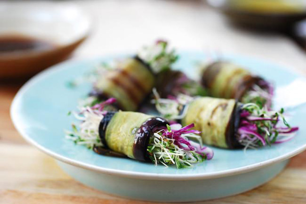 • Với những ngày chán thịt cá, bạn có thể tìm đến món chay cà tím cuộn rau củ thanh đạm nhưng đầy màu sắc này.