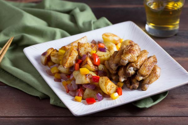 • Cánh gà được tẩm ướp gia vị đậm đà ăn kèm với khoai tây phù hợp cho bữa cơm gia đình vào những ngày se lạnh.