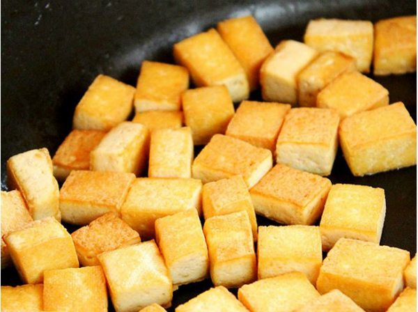 • Bạn nên cho đậu vào tủ lạnh khoảng 30 giây, sau đó chao dầu đều các mặt đậu trước khi rán.