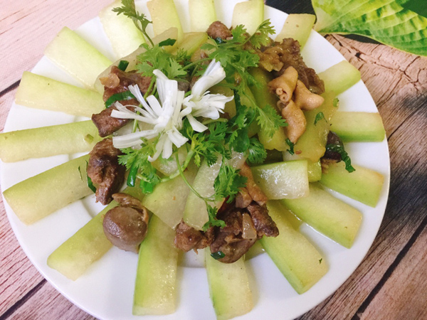 • Vị tươi mát của bí quyện với vị ngọt của lòng gà, thêm các loại rau thơm kích thích vị giác khiến món ăn trở nên ngon và không ngán.