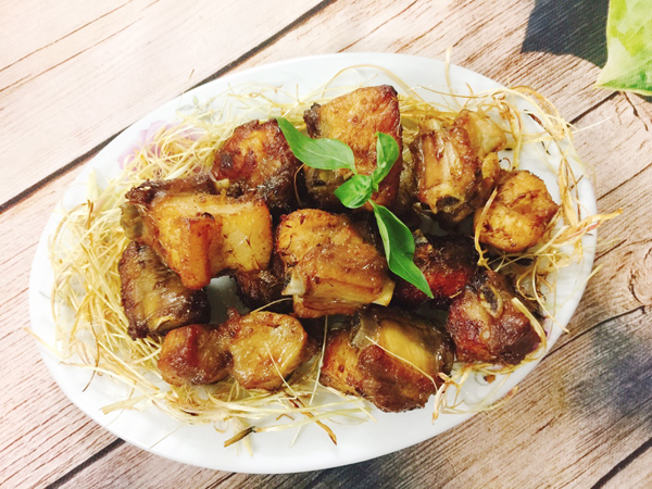 • Từng miếng thịt giòn rụm bên ngoài, bên trong mềm ngọt, chấm cùng nước mắm tỏi ớt cay cay sẽ hấp dẫn vô cùng.