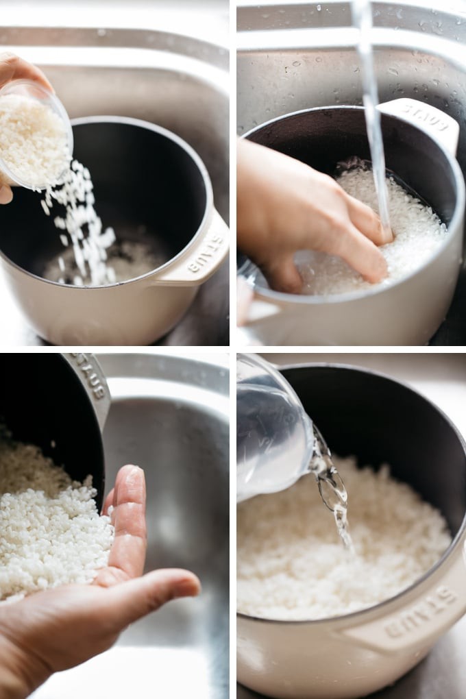 1. Rửa kỹ gạo cho đến khi nước rửa sạch. Bạn chỉ nên rửa gạo chứ không nên vo gạo vì sẽ làm mất chất dinh dưỡng.