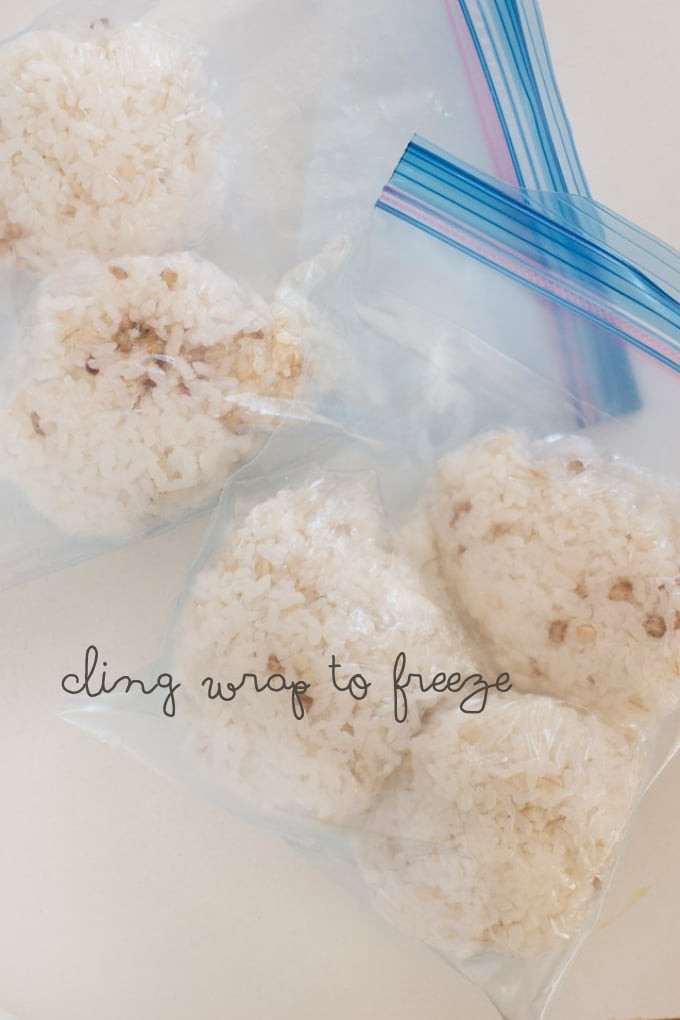 Khi cơm thừa thì cho vào túi zip rồi đặt trong ngăn đá để lưu trữ. Khi ăn chỉ cần đem ra giã đông rồi cho vào nồi cơm điện để hâm lại.