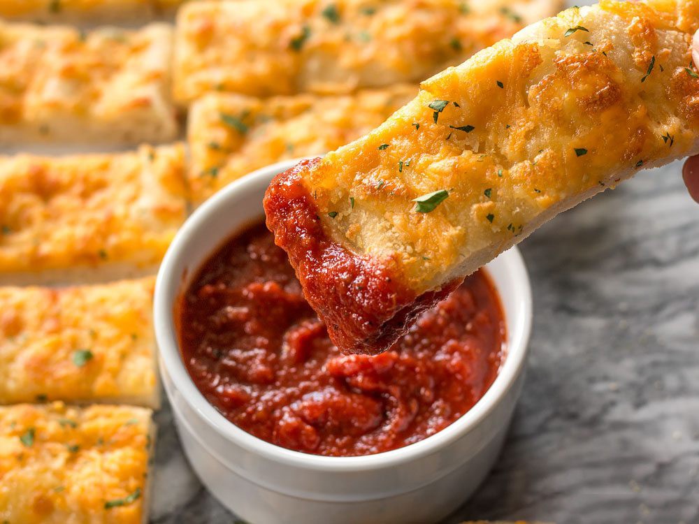 Khi bánh chín bạn trình bày ra đĩa, cắt miếng vừa ăn. Dùng nóng kèm tương ớt hoặc tương cà đều ngon. Món bánh mì phô mai đặc biệt này chắc chắn sẽ khiến các bé nhà bạn vô cùng thích thú đấy!