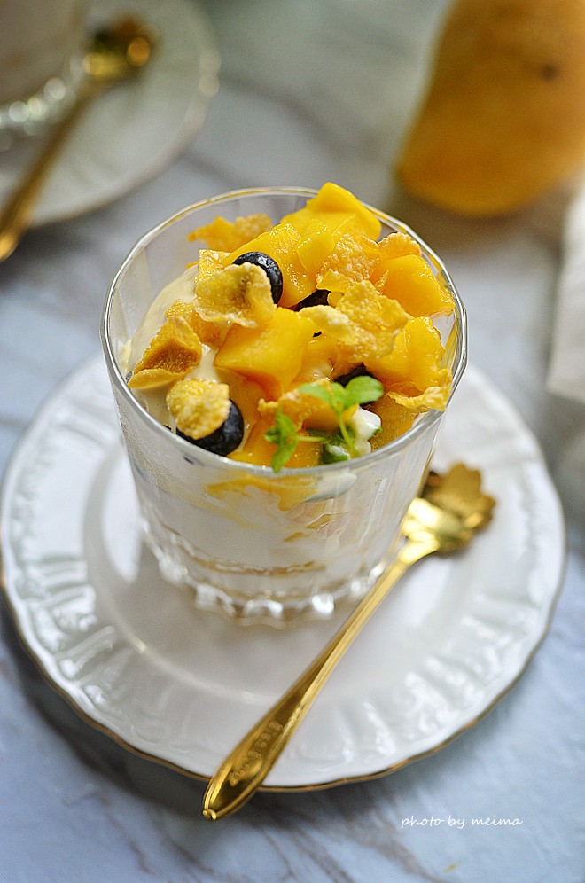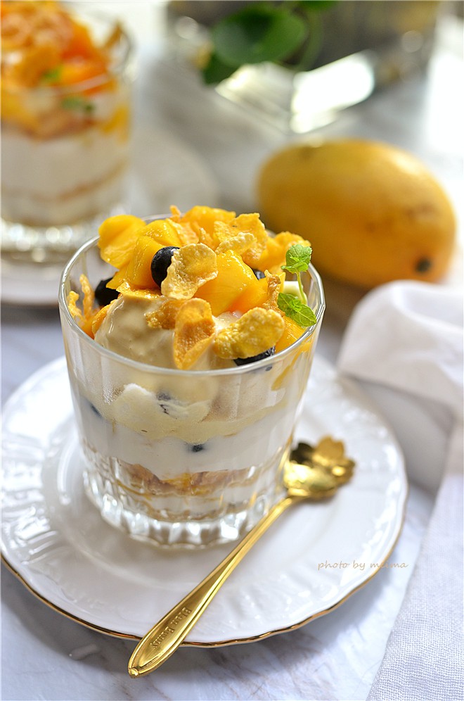 Tiếp đến là 1 lớp ngũ cốc. Rồi tới xoài chín.