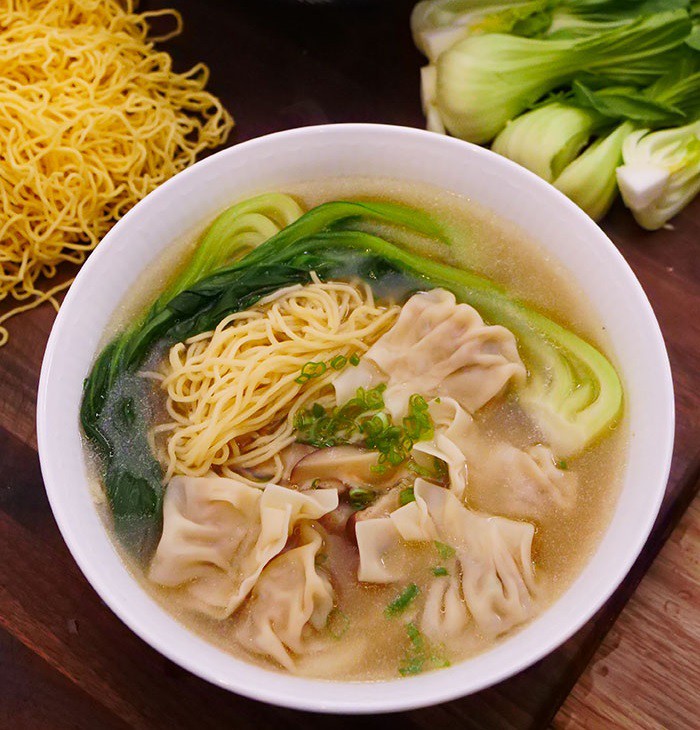 Một bát mì hoành thánh với phần nước dùng ngọt, nhân hoành thánh được làm vừa vặn là lựa chọn hoàn hảo để khởi đầu ngày làm việc mới.