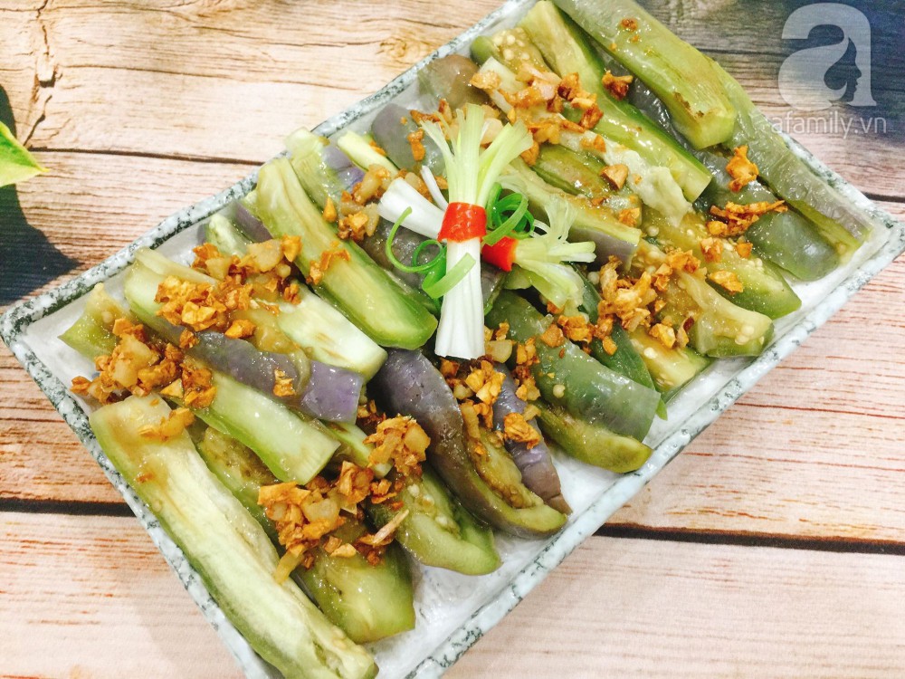 Salad cà tím có vị ngọt tự nhiên của cà, vị béo của nước xốt, thơm nức mũi của tỏi phi giòn, làm món ăn kèm cơm cũng rất ngon miệng.