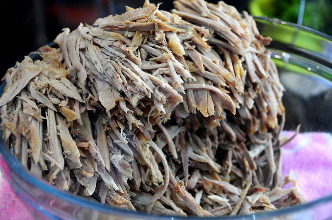 Càng về sau, món ăn dân dã càng được người đứng bếp sáng tạo thêm. Thay vì chỉ có bì, đầu bếp thái sợi thịt heo nạc luộc. Thịt muốn ngon thì luộc với nước dừa tươi, nêm chút muối. Một số người dùng thịt heo này trộn cùng với bì, cả hai quyện vào nhau cho mùi thơm và vị rất ngon.