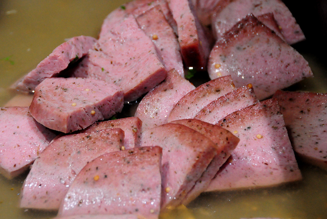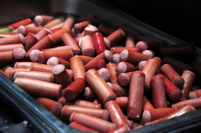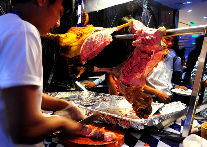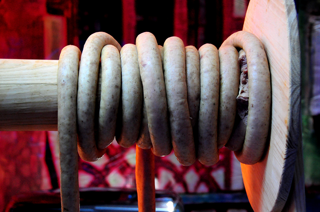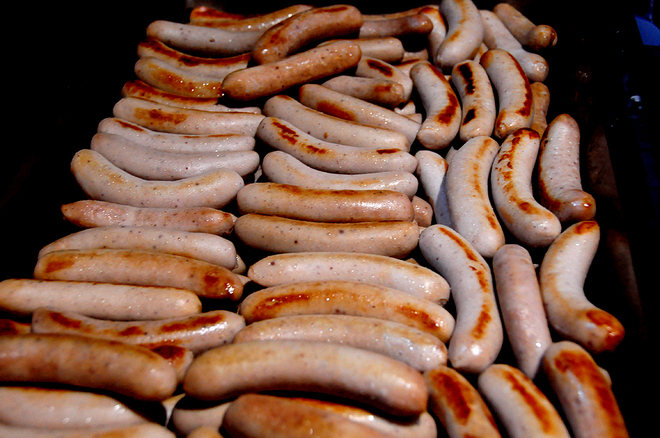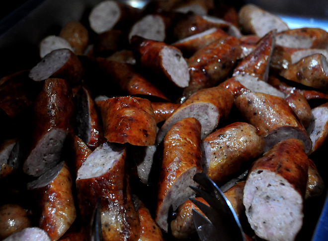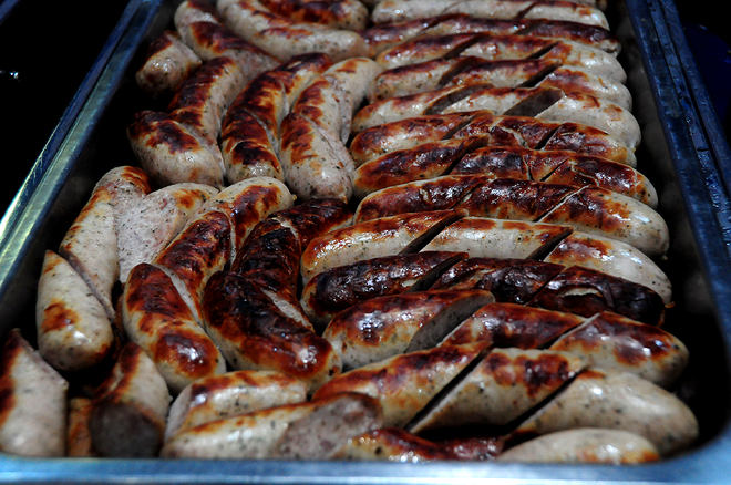 Mở cửa phục vụ khách từ 6/10, lễ hội bia tại một khách sạn ở quận 5, TP HCM là nơi quy tụ các món ăn truyền thống vốn nổi tiếng của Đức. Trong ảnh là món xúc xích gà nướng cháy.