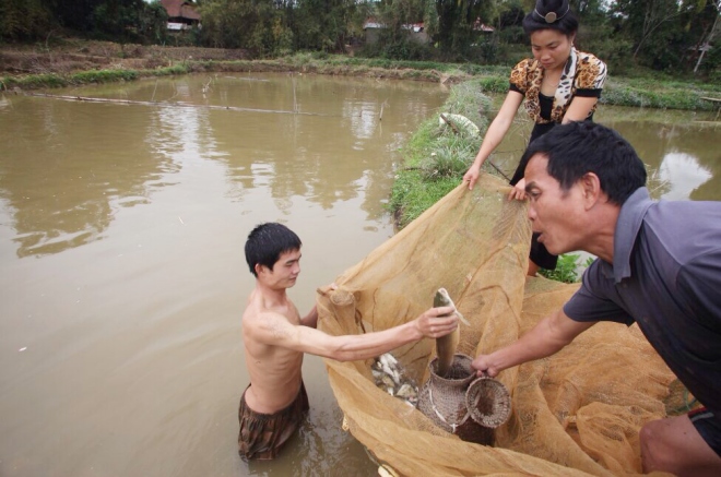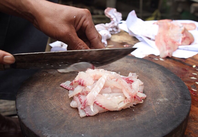 Cá chép, cá trắm, cá trôi loại to đánh vảy lọc bỏ xương, lấy phần thịt và thấm hết nước cá, dùng dao thái lát nhỏ, mỏng. Mục đích để khử mùi tanh, giúp cá nhanh ngấm gia vị.