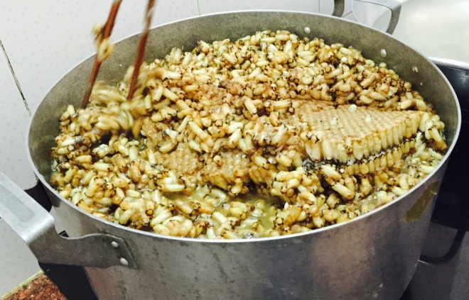 Khi lấy tổ ong về, người ta cắt miếng vừa phải rồi thả vào nồi nước sôi. Lúc này, người làm phải đảo đều vừa để ong chín mà không nát, vừa làm phần sáp tan chảy.