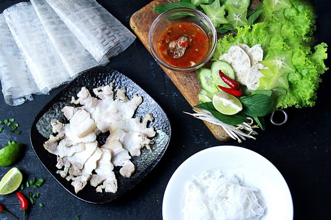 Thịt luộc cuốn mắm cá rò sử dụng thịt ba rọi có chút nạc, chút mỡ. Thịt chín còn hơi dai, hơi béo chút ở đầu da, giữ vị ngọt tự nhiên. Rau sống với chuối chát và khế chua như chất xúc tác, làm tăng thêm hương vị của món ăn. Đặc biệt hơn cả là mắm cá rò mềm thơm sóng sánh.