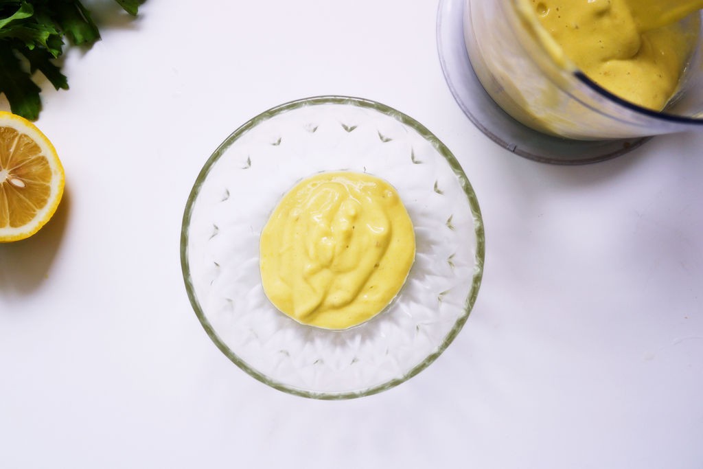 Xay nhuyễn hỗn hợp bơ chuối ta được phần nước xốt salad.