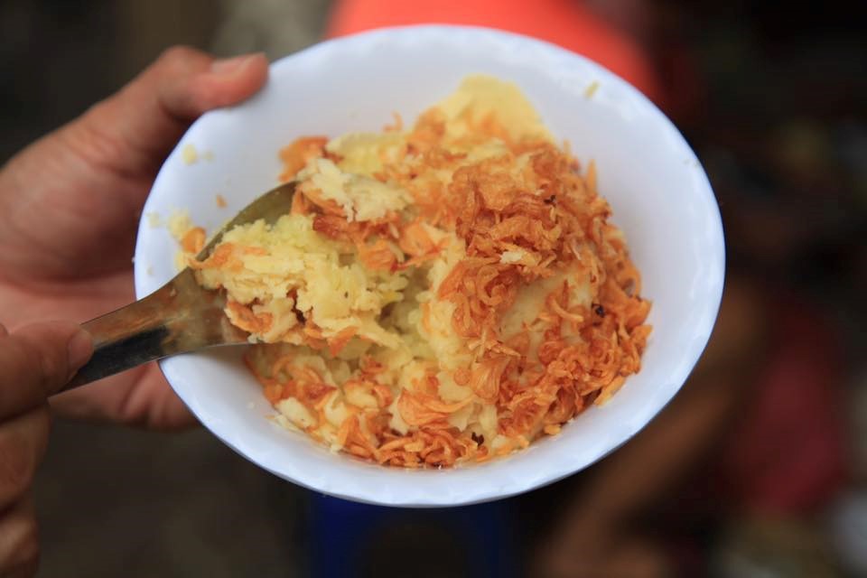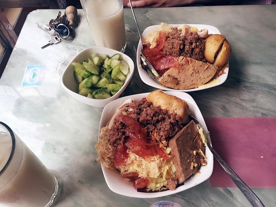 Xôi: Mới sáng sớm tinh mơ, các bà, mẹ đã xếp từng chiếc ghế nhựa ngồi bày bán ở ven đường, ngõ hẽm. Gói xôi nóng, dẻo thơm được bọc trong lá chuối, hành phi giòn có màu cánh gián đậm thêm từng lát đậu xanh bùi bùi, rưới lên trên chút dầu ăn. Thực khách tha hồ lựa chọn và gọi thêm như xôi lạc, xôi ngô... gói xôi 5.000-10.000 đồng cũng đủ bạn no căng và tràn đầy năng lượng cho buổi sáng học tập và làm việc. Ảnh: Việt Nguyễn.
