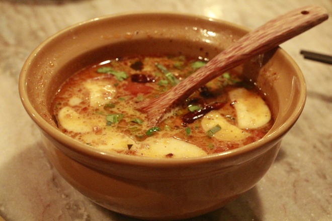 Tom yum nước dừa cay xè, béo béo - kiểu canh chua cay nổi tiếng của Thái Lan, đặc biệt ngon khi bạn ăn chung với cơm chiên hải sản. Nếu không ăn cay được, bạn có thể nhờ đầu bếp gia giảm vị cay cho thích hợp với vị giác của mình.