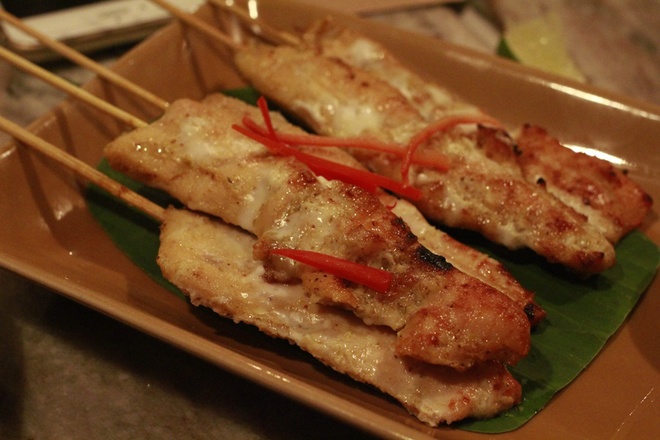 Các món nướng như thịt heo, gà xiên nướng ... chấm nước sốt được liệt vào danh sách món Thái không thể bỏ qua. Bạn có thể dễ dàng thưởng thức những xiên nướng kiểu Thái hấp dẫn này ở các quán ăn trên đường Lý Tự Trọng, Tô Hiến Thành, Mạc Thị Bưởi... Đây là món ăn yêu thích của các bạn trẻ bởi thực khách có thể vừa nhâm nhi vừa trò chuyện thoải mái.