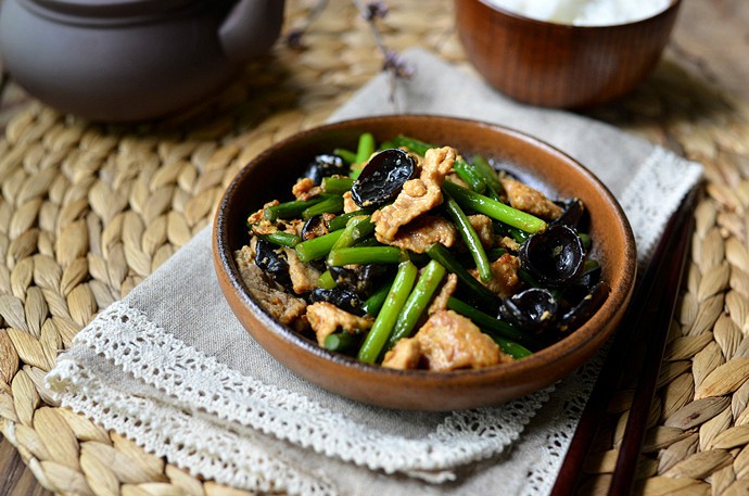 Trút thịt heo xào ra đĩa dùng nóng với cơm trắng. Món thịt xào kiểu này lạ miệng mà thơm ngon cực kỳ, mộc nhĩ sừn sựt đậm đà, thịt mềm ngọt cực kỳ ăn kèm cơm trắng rất vừa miệng.